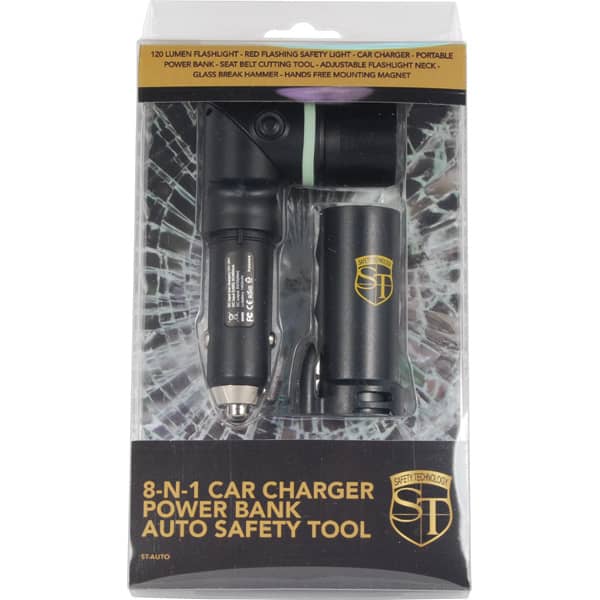 Drive with confidence with ST-AUTO 8-N-1 car charger power bank auto safety tool; because we know that no matter where life takes you, it pays to be prepared!